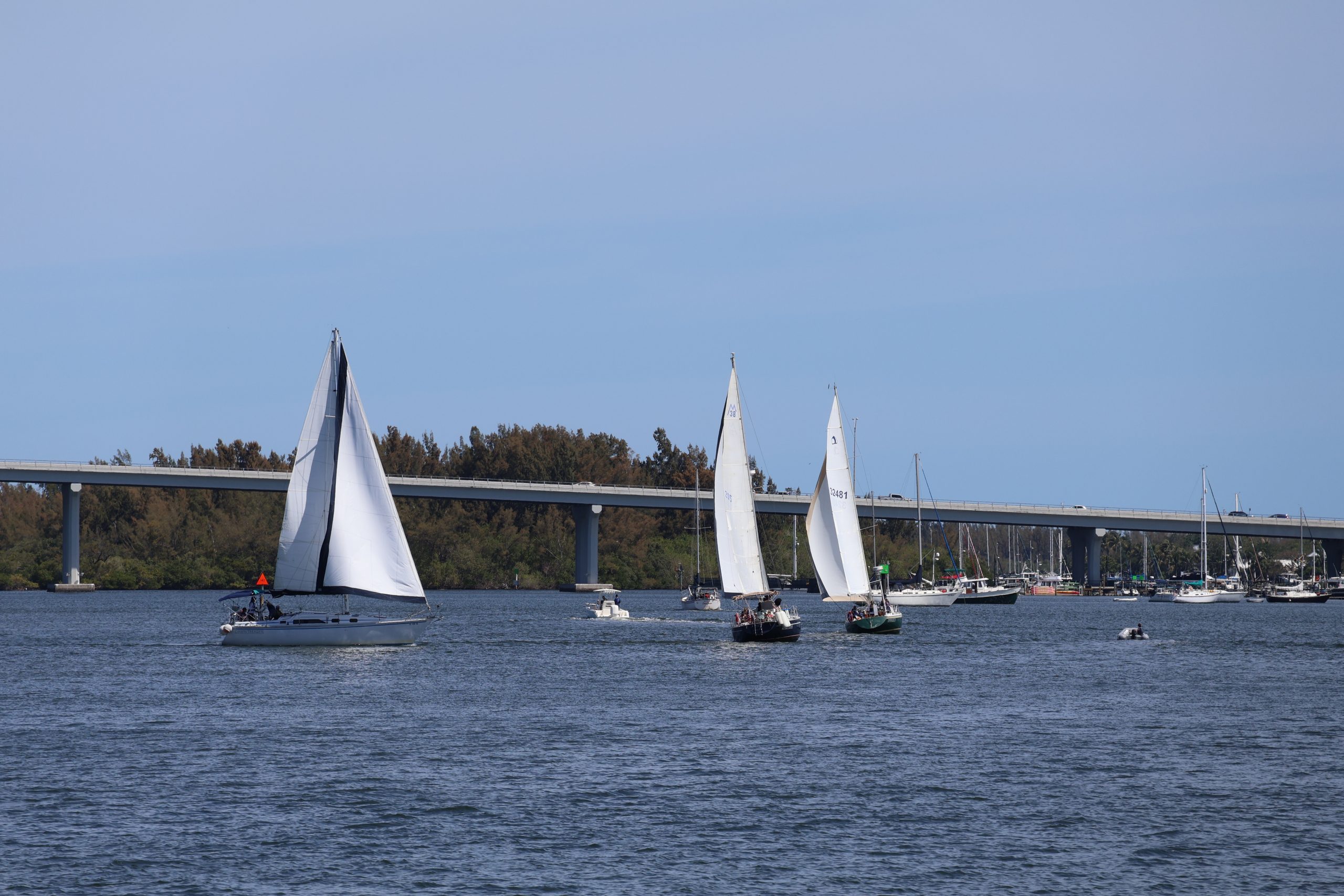 About the only notable event occurred while we were queued up for a bridge opening. I was on the radio with the bridgetender when suddenly Keith from the Pride of Maui spotted us…from somewhere. I really didn’t need the distraction at that moment, but he was hailing us and wanting to get an email to send us more information and comment again on how much he liked our boat.  Good news…I didn’t hit any of the other boats or the bridge. Yeah!