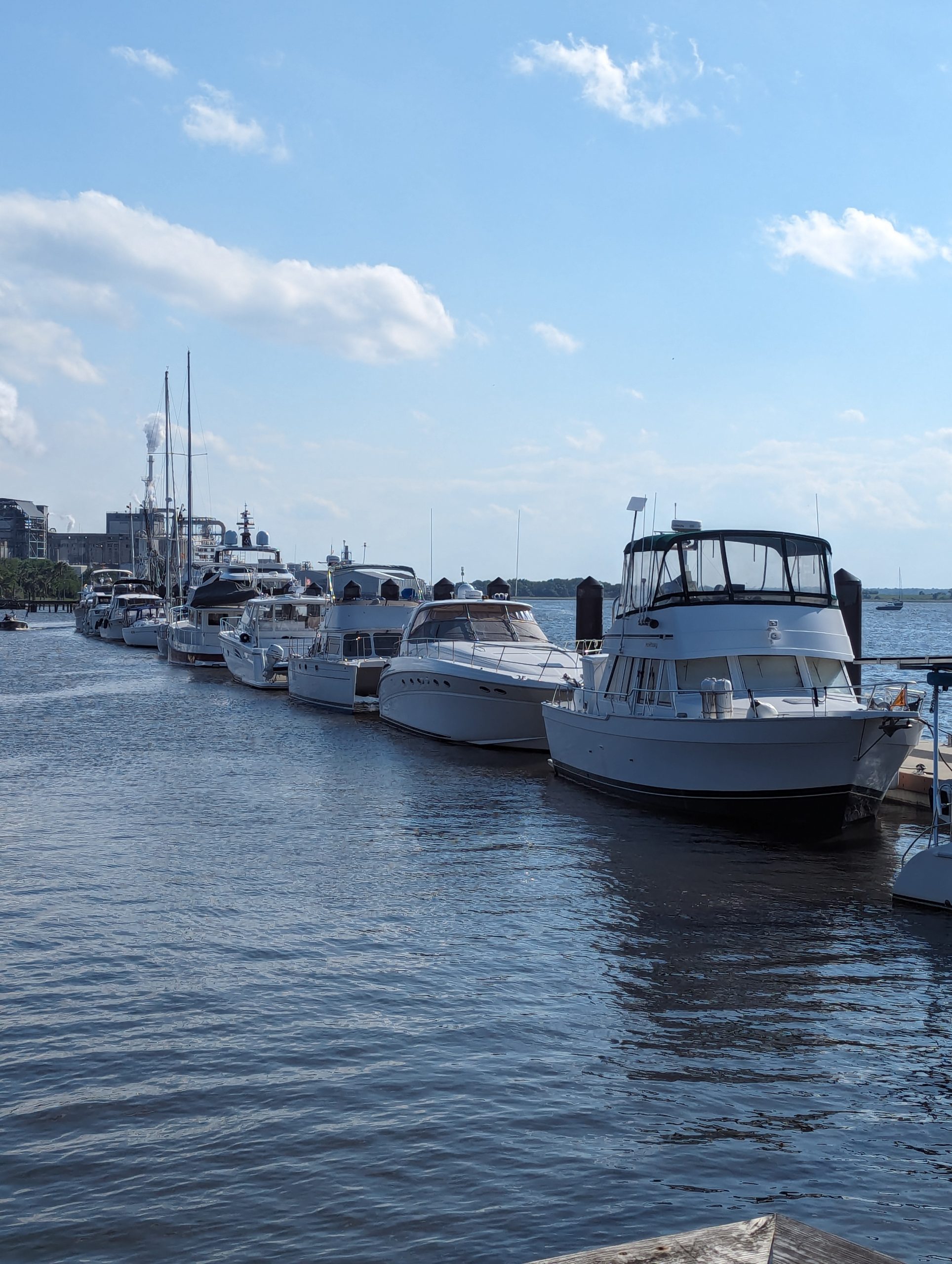 You can see from some of the pictures some of the landscape contains more marsh and is beginning to resemble the low lands of Georgia. And the tides are now in the 5 foot range and come with significant currents! Route planning and docking now includes a check of the tide tables for some sections and marinas.